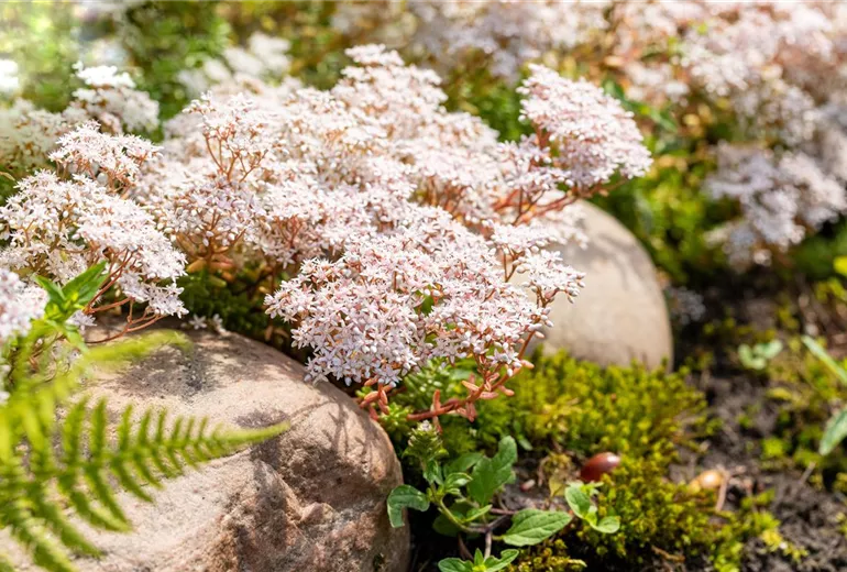 Wer Stauden kaufen möchte, der kann aus einer Vielzahl von Arten wählen, welche unterschiedlichen Lebensbereichen zugeordnet werden können. Es gibt beispielweise Waldstauden und Gehölzrandstauden, die für die Bepflanzung von Baumscheiben, hinter Gebäuden oder zwischen Grosssträuchern empfehlenswert sind. Viele Wald- oder Gehölzrandstauden haben weisse Blüten, sodass sie das Licht gut reflektieren können und ein besonders stimmungsvolles Flair in die schattigen Bereiche des Gartens zaubern. Freiflächen- und Beetstauden hingegen sind Pflanzen, die fast ausschliesslich auf sonnigen Flächen gedeihen. Sie vertragen keine Licht- oder Wurzelkonkurrenz und stehen daher gerne im Mittelpunkt von Staudenbepflanzungen. Steingartenstauden und Alpinstauden mögen es ebenso sonnig, doch sie benötigen darüber hinaus auch besonders mageres, durchlässiges Substrat und die abstrahlende Wärme von Steinen oder Wänden. Im Gegensatz dazu gedeihen Uferstauden in nassen bis feuchten Böden. Bei allen Arten von Stauden gibt es insektenfreundliche Pflanzen mit ungefüllten Blüten, welche besonders reich an Nektar und Pollen sind. Stauden mit gefüllten Blüten hingegen punkten durch eine besonders pompöse Erscheinung. Am besten ist es, Staudenpflanzen mit ungefüllten und gefüllten Blüten zu kombinieren.