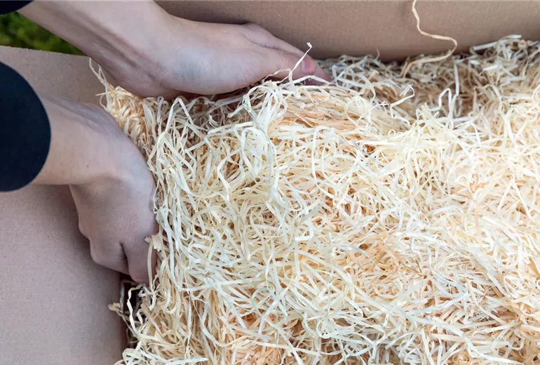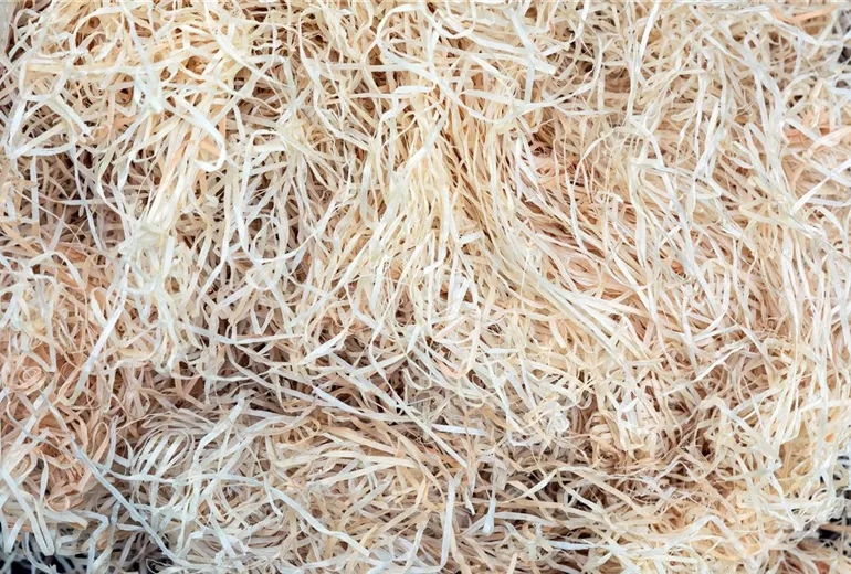 Es gibt diverse Arten von Holzwolle, die zwar gleich gewonnen werden, aber sich in einigen Punkten voneinander unterscheiden. Das als Gartenholzwolle, Gemüseholzwolle oder Erdbeerholzwolle bekannte Produkt ist vor allem für den Einsatz im Nutzgarten konzipiert, um die Ernteerträge zu steigern und die Früchte vor Fäulnis zu schützen. Doch auch im Ziergarten findet es als Winterschutz durchaus Verwendung. Darüber hinaus wird die Holzwolle gerne auch zur Verbesserung des Bodens nach einer Gartenneuanlage verwendet. Gartenholzwolle kann noch eine Restfeuchte von 20 % haben und zudem Staub enthalten. Im Gegensatz dazu ist Kuschelholzwolle nahezu 100-prozentig trocken und deshalb besser formbar und weicher. Bei der Herstellung wird auch darauf geachtet, ein möglichst staubfreies Produkt zu erhalten. Kuschelholzwolle wird daher besonders gerne als Einstreu für Kleintiere verwendet, weil es den Nestbau begünstigt und sehr geruchshemmend ist. Darüber hinaus wärmt es Hamster und Co. Doch auch für empfindliche Kulturen im Garten, auf der Terrasse oder auf dem Balkon kann die Kuschelholzwolle als Mulchmaterial eingesetzt werden.