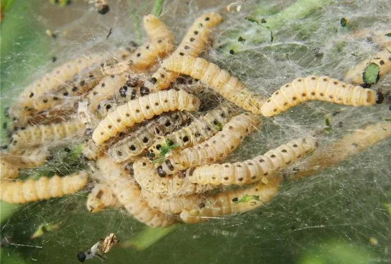 Im Mai und Juni sind an einzelnen Ästen auffällige Gespinste zu finden. Bei näherer Betrachtung ist zu erkennen, dass sich in diesen Gespinsten eine Vielzahl von gelblichen oder hellgrauen Räupchen befindet.