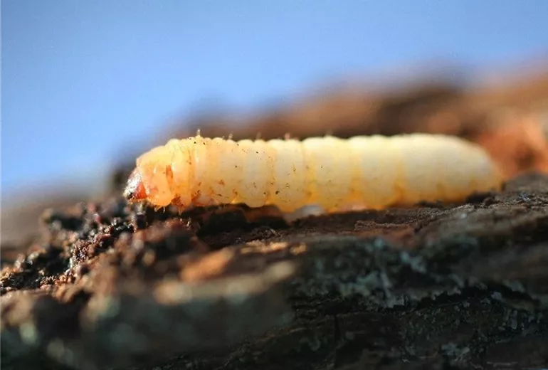 Der Birnbaumprachtkäfer ( Agrilus sinuatus ) tritt vor allem in sehr warmen Jahren auf. Die bis zu 10 mm langen Käfer legen im Juni ihre Eier in die Rinde. Die jungen Larven bohren sich sofort in die Rinde ein, wo sie im Laufe der nächsten Jahre die typischen Frassgänge anlegen. Im dritten Jahr schlüpfen die fertigen Käfer im Frühling.
