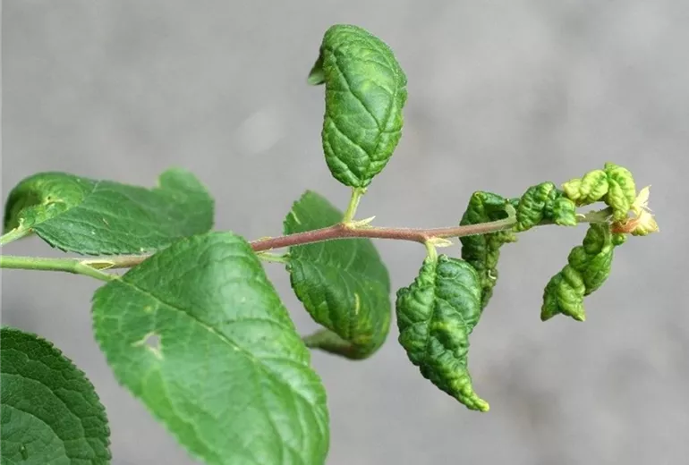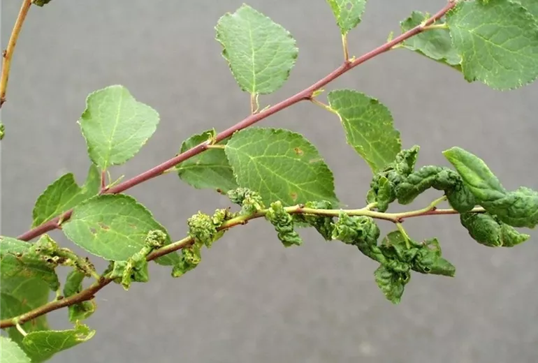 Diese beiden eng verwandten Arten verursachen im Frühjahr starke Blattverkräuselungen und z.T. massive Stauchungen und Verdrehungen des jungen Triebes.