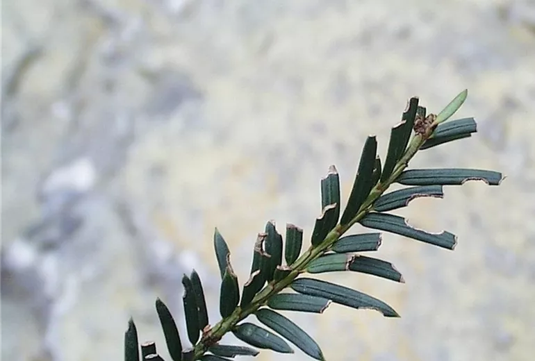 Der Dickmaulrüssler gehört zur Gruppe der Rüsselkäfer. Die grauen, ca. 1 cm langen Käfer fressen bei Dunkelheit an den Nadeln der Eiben und an verschiedenen anderen Kulturpflanzen.