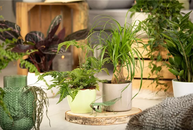 Les « appartements verts » sont bien plus qu'un simple effet de mode: en effet, les plantes ne permettent pas seulement d'aménager joliment les lieux de vie, mais aussi de permettre un style de vie propre, créatif et artistique. Les plantes sont mises en avant et combinées entre elles : le plus important, c'est qu'il y ait du vert. Elles permettent ainsi de vivre une expérience de la nature dans son propre appartement. Il ne faut pas négliger la quantité. En effet, quelques plantes isolées ne suffisent pas à créer une jungle. C'est pourquoi elles ne doivent pas seulement trouver leur place sur les rebords des fenêtres, mais aussi conquérir l'espace sur le buffet, descendre de la bibliothèque ou occuper l'espace entre le canapé et la porte. Les contrastes rendent le look encore plus intéressant. En effet, les plantes à fleurs ou plantes exotiques au feuillage coloré permettent aux jardiniers d'intérieur de créer un style totalement personnel individuel qui ne passe pas inaperçu.
