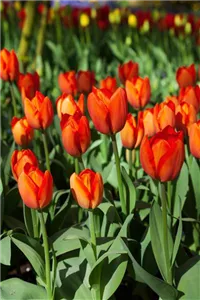 Tulipa 'Orange Balloon' donne de jolies fleurs orange, parfumées de avril à mai. Préfère un sol semi-perméable, mou, riche en éléments nutritifs à un emplacement ensoleillée. Cette plante vivace étroite, érigée atteint habituellement une hauteur de 45-55 cm et jusqu’à 12 cm de large.